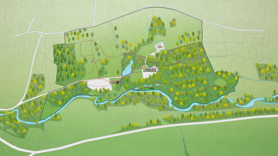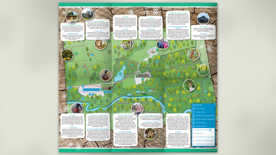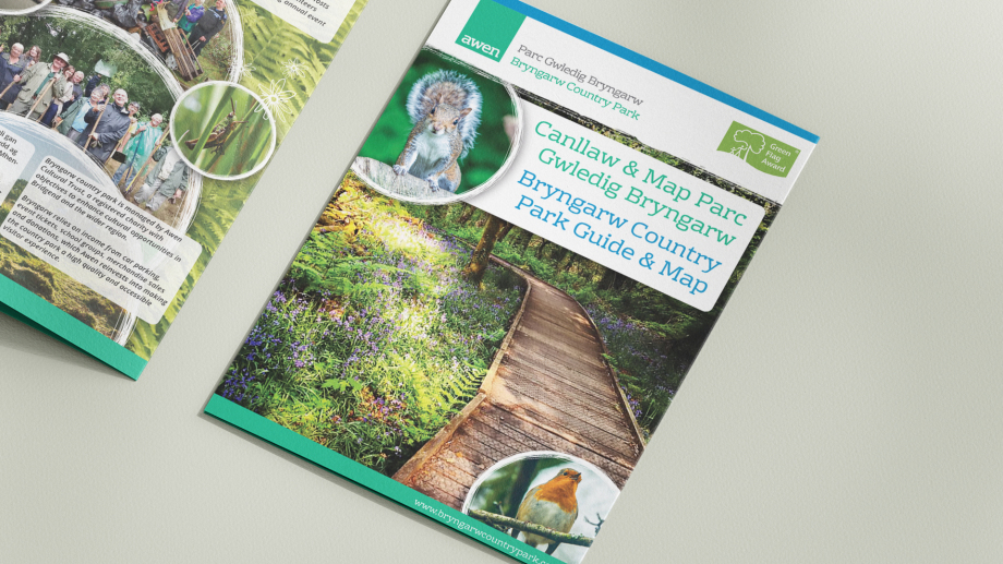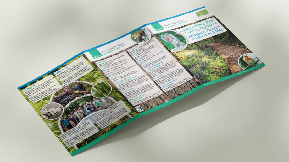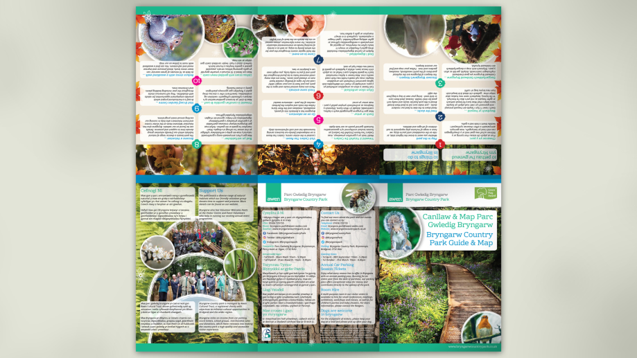 I created a full map of Bryngarw Park, using OS maps and exploring and recording the full area of the park. Once completed the map was used for booklets, flyers and information boards.