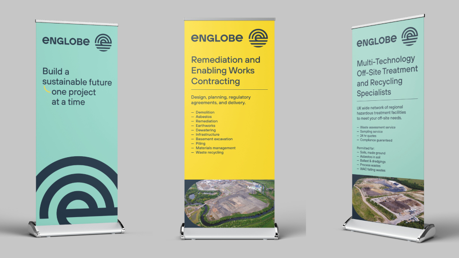 MÔR creates a wide range of design work for Englobe UK, including these large format exhibition graphics for Englobe UK.