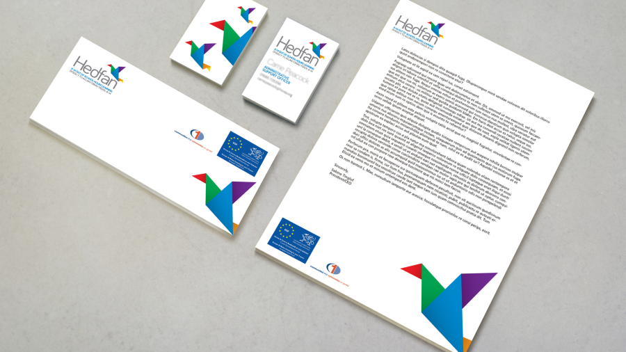 Hedfan is an out of school learning programme for 8 to 14 year olds. A colourful origami inspired bird as the main design icon, and a modern and approachable typeface has been used.